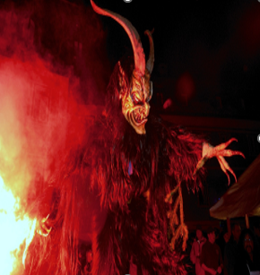 AUSTRIA (BEWARE OF KRAMPUS!)- In Austria, St. Nicholas has a scary sidekick named Karmapus- a furry, horned creature said to punish naughty children. Each December, locals dress up in frightening costumes for "Krampus Runs," stomping through the streets in a spooky yet festive parade.